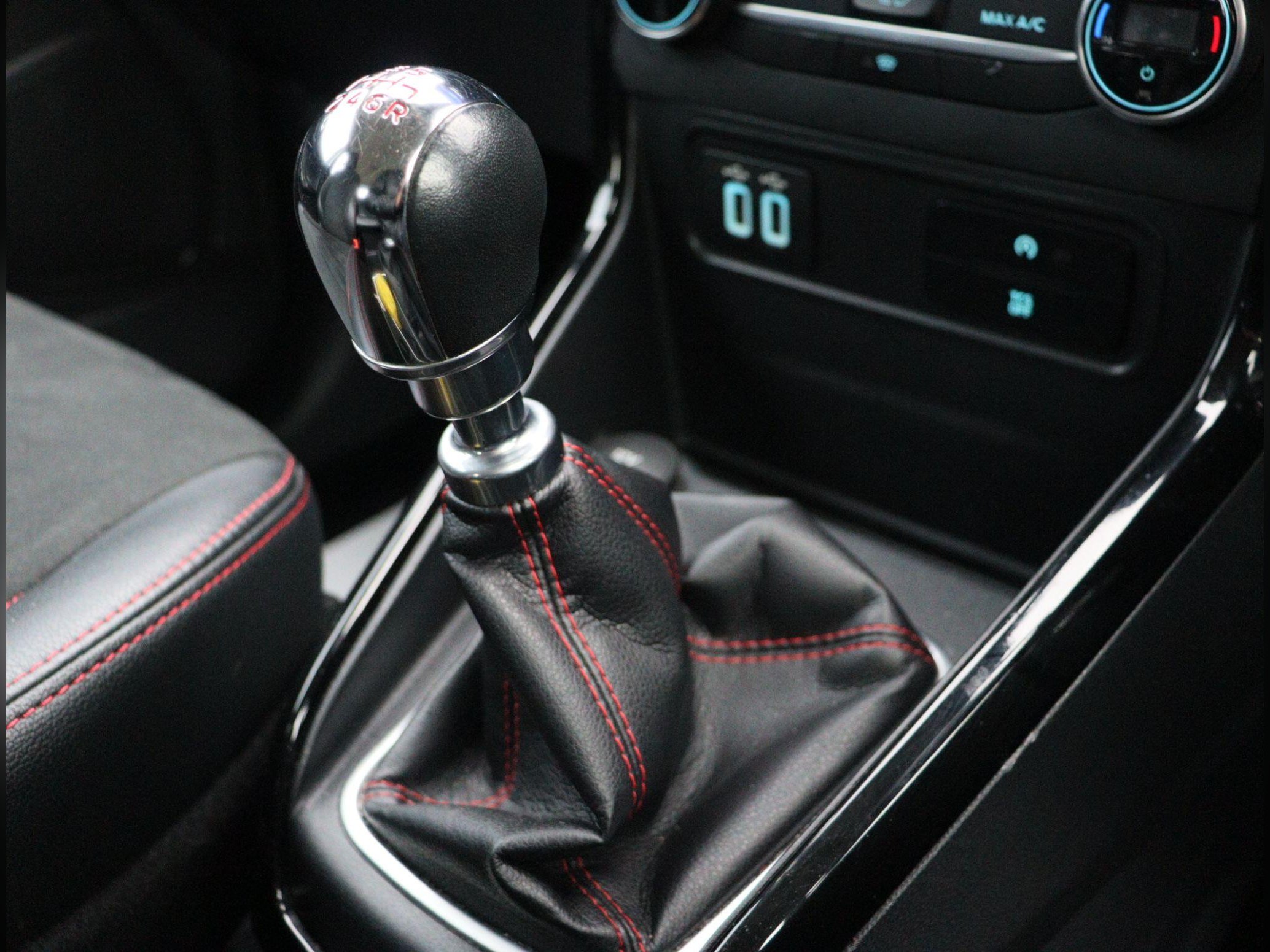 - Gearshift Knob - Leather-Trimmed with Black Insert and Aluminium-Finish Ring and Red Stitching