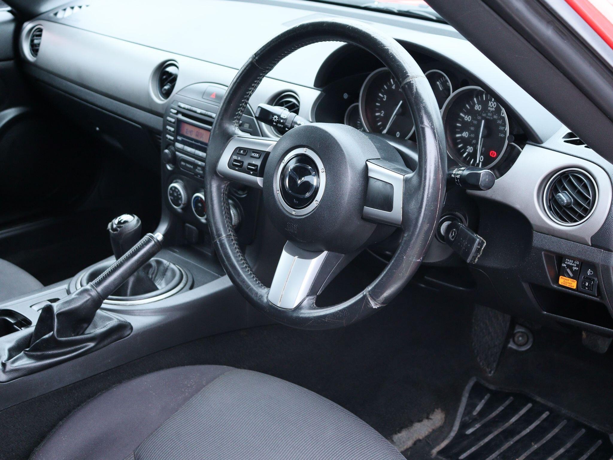 Discover this 2010 Mazda MX-5 i SE, a brilliant example of open top motoring. This particular model boasts a responsive 1.8 litre petrol engine, paired with a smooth manual transmission, offering an engaging driving experience. Inside, you'll find the comfort of climate control air conditioning, ensuring a pleasant journey no matter the weather.