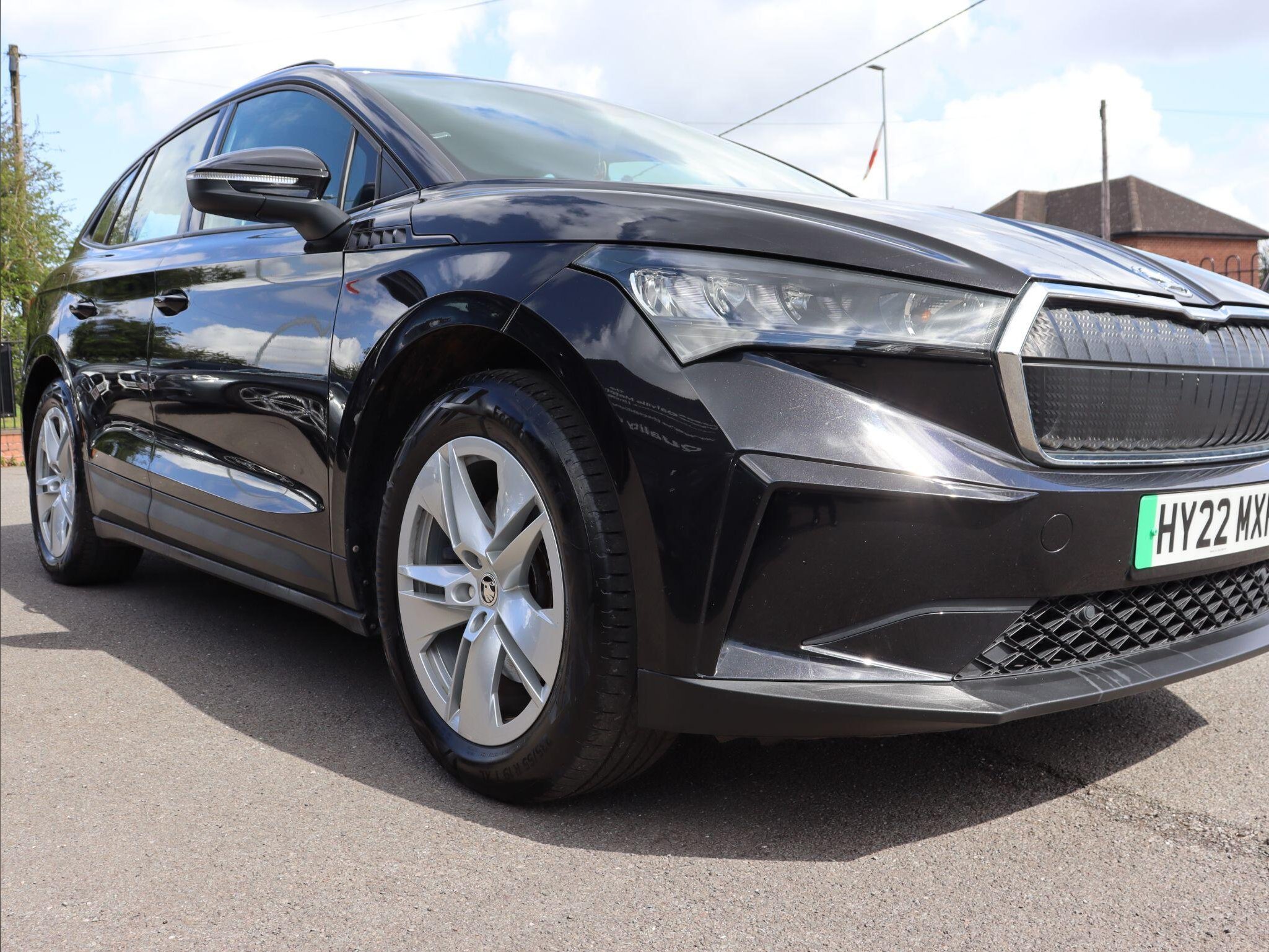This 2022 Skoda Enyaq 60 is a superb example, boasting a full dealership service history and a clear vehicle history check, having been owned by just one person from new. As an electric vehicle, it offers a substantial battery total capacity of 62 kWh, providing a maximum range of 256 miles when new. Charging is convenient, with a full charge at home taking approximately 9 hours and 30 minutes using a 7kW charger, while rapid public charging can take you from empty to 80% in as little as 58 minutes. This Enyaq also comes equipped with a Light and Rain Sensor, automatic dimming rear view mirror, and automatic headlights, alongside rear parking sensors for added ease. Basic LED headlights with daytime running lights and Skoda Connect iV Remote Services, including air conditioning control, are also featured, along with Bluetooth connectivity.